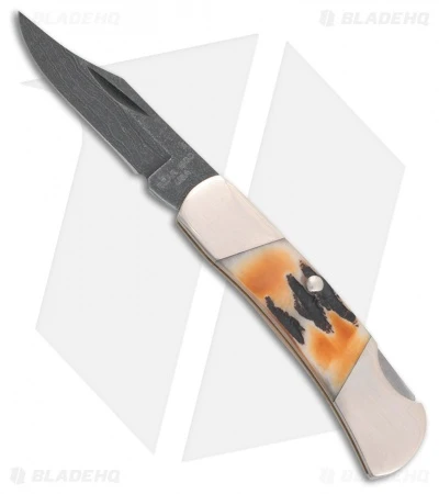 - Genuine India stag bone handle scales with nickel silver bolsters and a lock back mechanism.