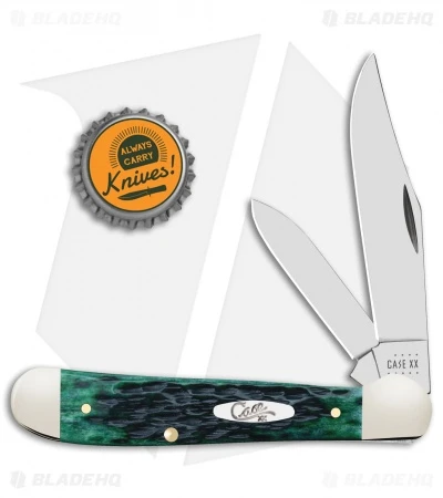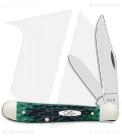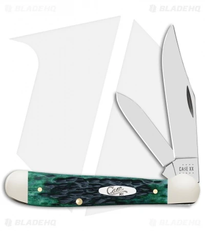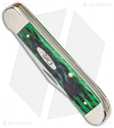 This Copperhead has a Pocket Worn Bermuda Green bone handle and clip and pen blades.