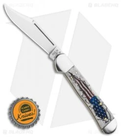 This 10451 Copperlock pocket knife from Case Cutlery has a smooth natural bone handle with an American Flag etched in to showcase your admiration for the red, white, and blue. The clip point blade is made of Tru-Sharp surgical stainless steel that will last generations. Pass along this great knife from Case Cutlery.
