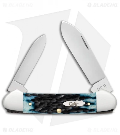The Case Canoe with jigged blue bone scales is a great addition to your collection or pocket. Tru-Sharp surgical stainless steel spear point and pen blades provide plenty of versatility for your daily cutting tasks. Jigged bone scales are a denim blue with an inlayed Case medallion. Polished nickel silver bolsters with brass pinned construction ensures years of reliable use.