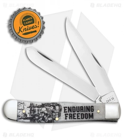 This knife is in the Case Knives Military series. This series includes several Case knife models, each with natural bone handles with commemorative embellishment from several important military conflicts in American history. Case knives are a part of American history, and no collection is complete without a Case in it!