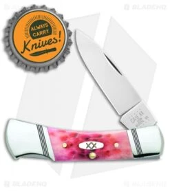 The Case Lockback pocket in raspberry pink bone will make a great addition to your traditional pocket knife collection. This model features nickle silver bolsters and standard jigged raspberry bone scales. A Tru-Sharp surgical stainless steel drop point blade provides plenty of utility for your daily cutting tasks.