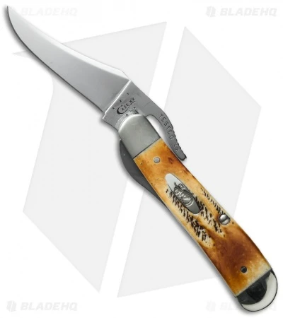 This Case Russlock knife features a stainless steel clip point blade with elongated hook flipper. The knife can be opened with one hand. The handle is constructed with stainless steel liners and liner lock for secure blade lock. It features nickel silver bolsters and bone stag scales. Nickel silver Case inlay shield. (6.5153L SS)