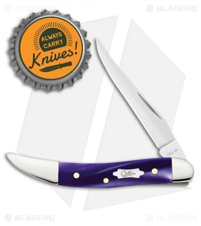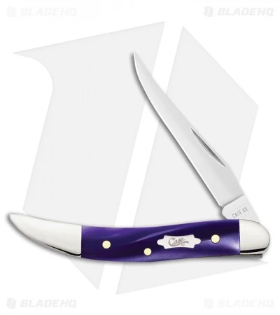 This Texas Toothpick model has a wicked purple kirinite handle and a stainless steel blade. Add a classic pocketknife to your collection with the Small Texas Toothpick from Case Knives. This model has a clip point blade with a nail nick opener. Nickel silver bolsters and a case logo inlay finish off the collectible design.