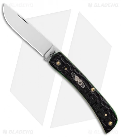 This Case Sod Buster Jr offers a classic pocket knife design with black and hunter green jigged bone handle scales. The stylish scales feature a Case logo inlay shield. It has a Tru-Sharp stainless steel blade with a nail nick opener. Brass pins and liners make for a sturdy reliable knife that is well suited for everyday carry or collection.