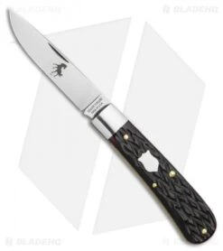 This Tidioute #74 Mustang from Great Eastern Cutlery has a black plum jigged bone handle and a drop point blade in a 1095 carbon steel.