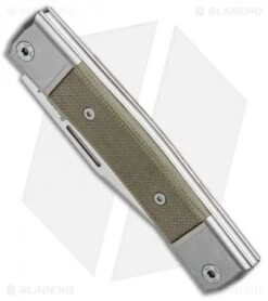 This Blade HQ Exclusive model of the LionSteel BestMan sports a satin clip point blade made from Bohler M390. The titanium handle has green micarta inlays with titanium bolsters.